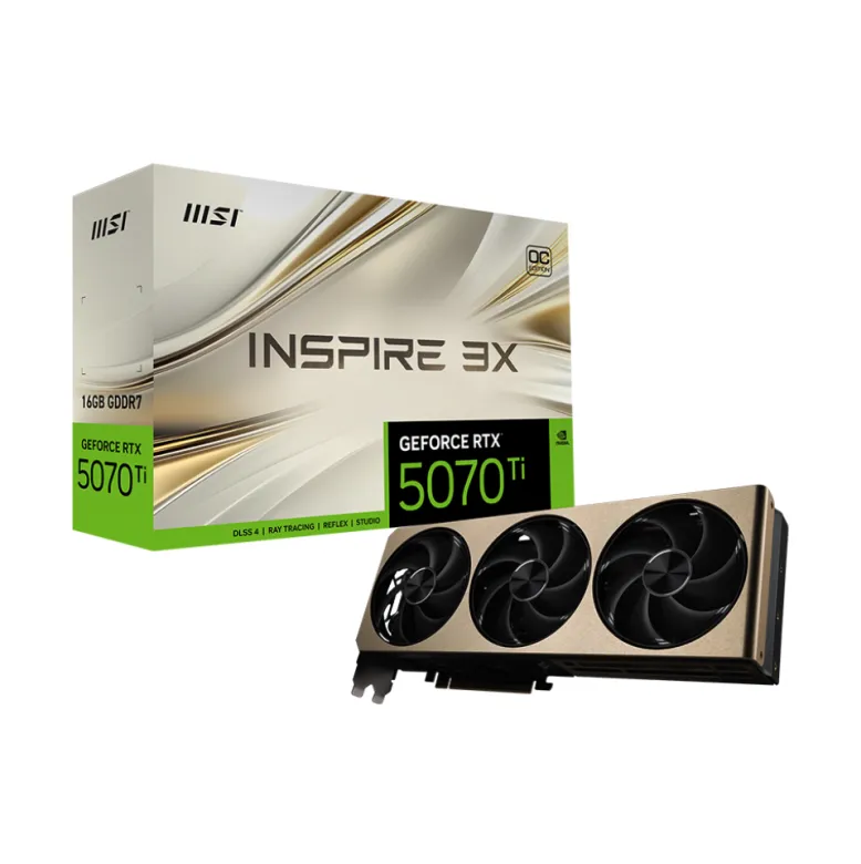 GPU MSI RTX 5070 TI 16GB INSPIRE 3X OC PLUS, GDDR7, 256-BITS, 3X DP / 1X HDMI – G507T-16I3CP