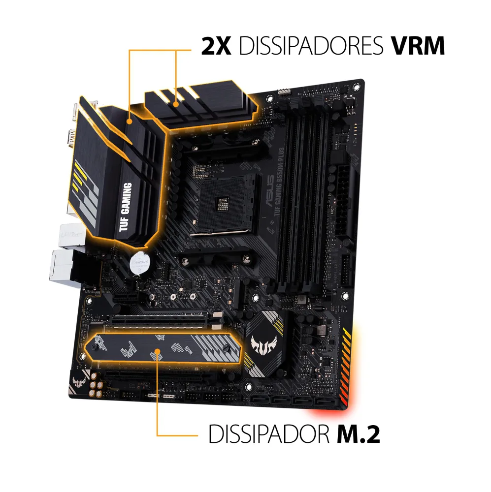 PLACA MÃE ASUS TUF GAMING B550M-PLUS, AMD AM4, MATX, DDR4 – TUF GAMING B550M-PLUS